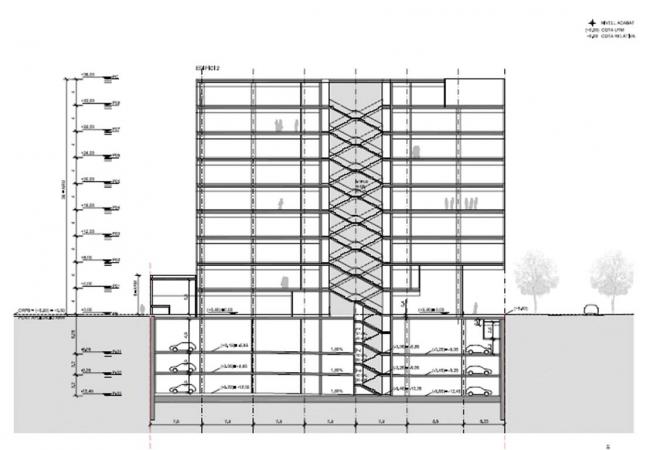 - Proyecto de Edificio de Oficinas en Barcelona, 22@, destinado a sedes corporativas que busquen operar en edificio de oficinas exento bajo la fórmula de llaves en mano en alquiler o en compra. 7.000m2 de superficie sobre rasante con un aparcamiento bajo rasante para aproximadamente 130 vehículos, con una coloración diferenciada y una configuración que permite el máximo aprovechamiento de las oficinas.Unas fachadas diseñadas a partir de la utilización de un cristal serigrafiado con franjas reflectantes verticales que le otorgan una alta protección climática. La construcción se está proyectando con materiales de máxima calidad que sean respetuosos con el medio ambiente y que permitan conjuntamente con sistemas energéticos eficientes que los edificios sean sostenibles sin desmerecer un correcto diseño que de una imagen moderna y singular de los mismos.